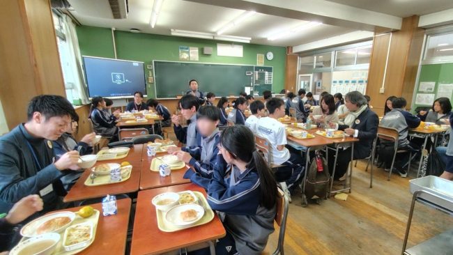 プログラムの最後は、生徒さんたちとテーブルを囲んでの給食タイム。おしゃべりなテーブルも、少し照れのあるテーブルもありましたが、かけがえのないひと時で、まさに一期一会でした。